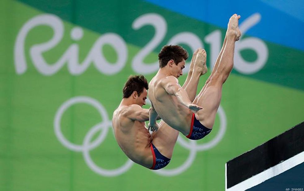 Tom Daley and Dan Goodfellow finished the men's synchronized 10-meter platform event in third place. The dynamic duo celebrated their bronze medals by posting an adorable selfie on Twitter and Instagram.