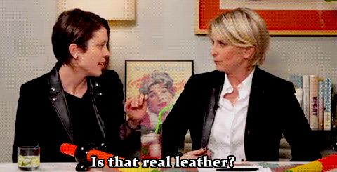 7. She rocks a leather lapelled black blazer and it's so lesbian lady of her.