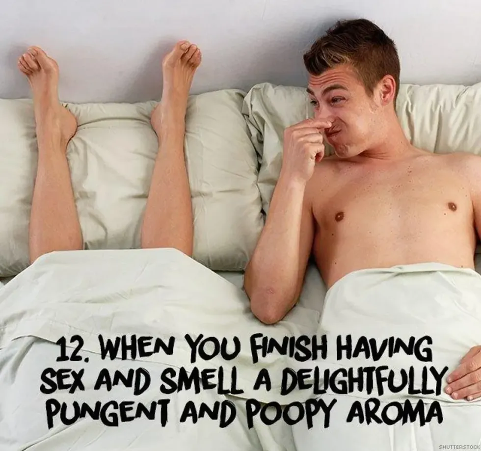 12. When you finish having sex and smell a delightfully pungent and poopy aroma