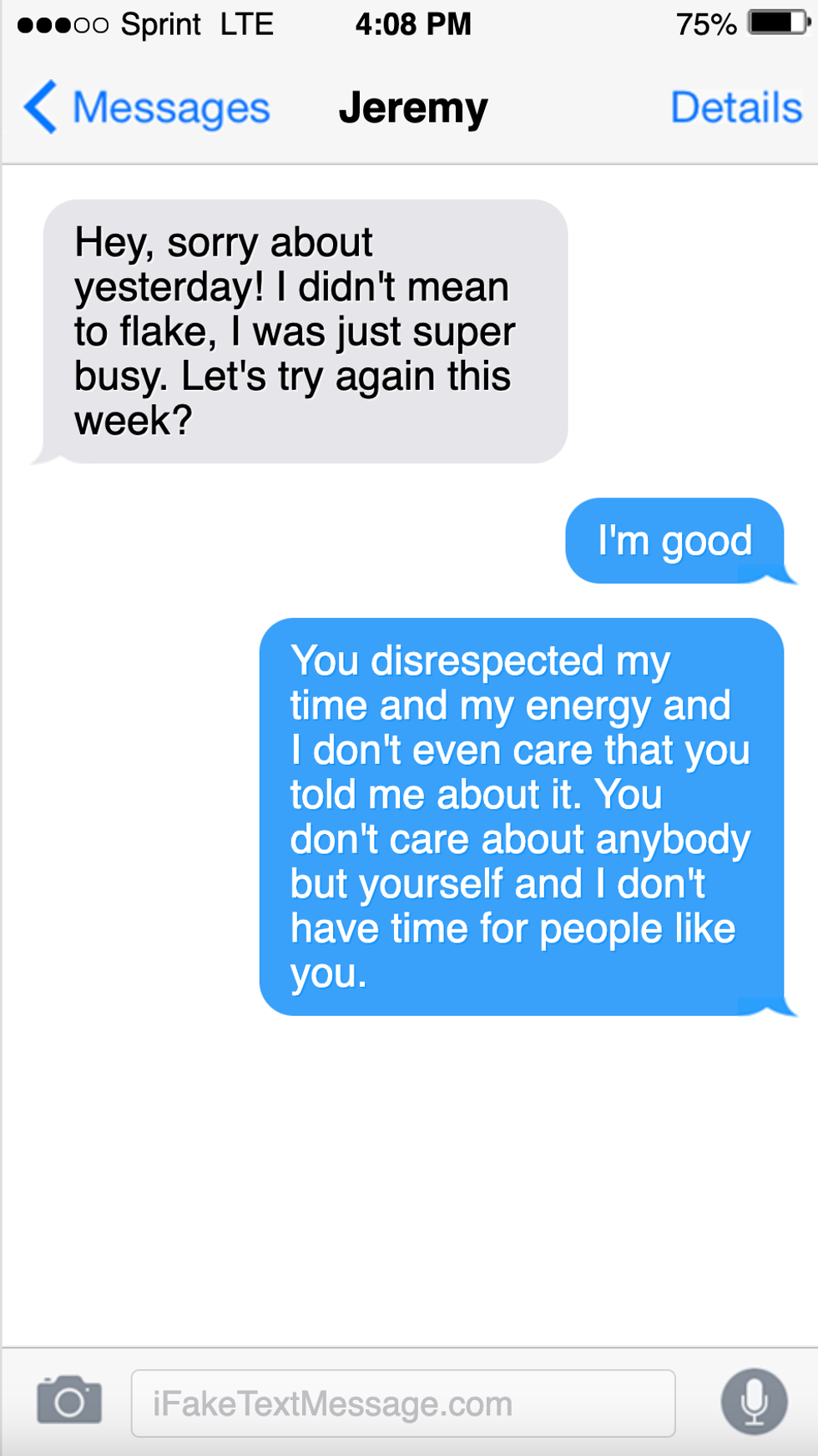 I’ve written about this before, and people definitely disagreed with me, but I think a blank “Hey.” is one of the most annoying texts in the history of mankind. We are all people who have busy lives. If you want to chat, then actually chat. A simple “How was your day?” is golden. If you want to make plans, do that. “Hey! You free this weekend and wanna go on a brewery tour?” But I’d bet that if you just say “hey” to your crush, he’s more likely to be bugged by it, and chances are he won't find it cute.