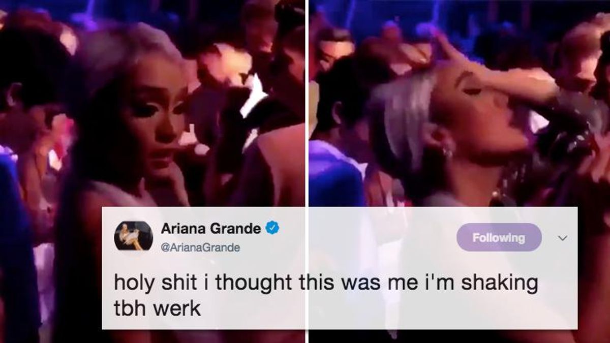 "Holy shit, I thought this was me," said Grande. "I'm shaking tbh werk."