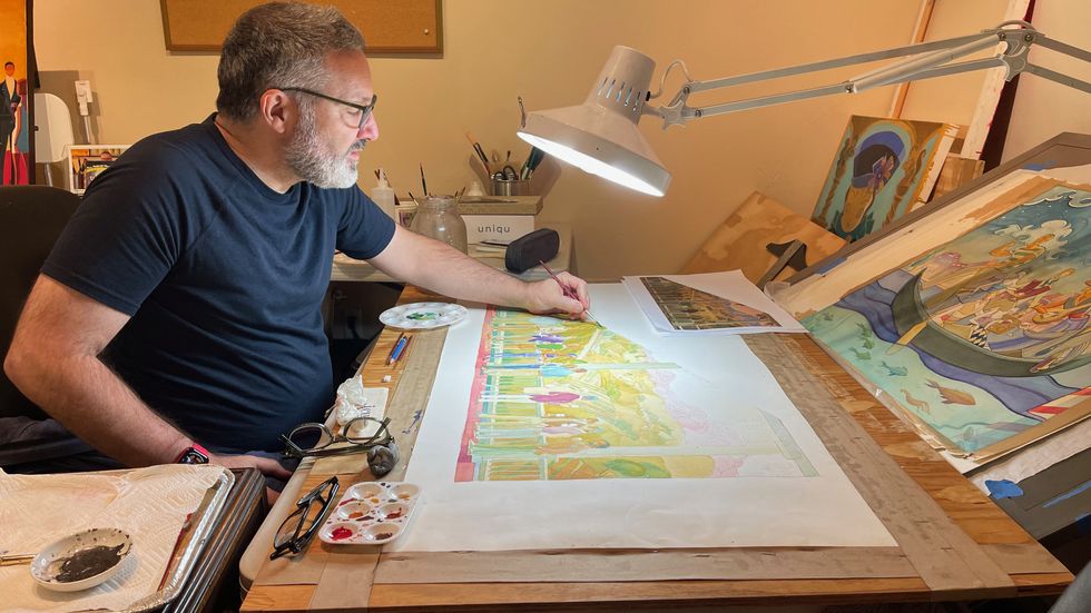 In an exclusive interview with Pride.com, Andy Sklar reflects on his artistic journey and the inspiration behind his work. "There's a sense of nostalgia in my work," he shares. Despite descriptions of his collection as art deco and a representation of the past, Andy explains that it wasn't his explicit intention to evoke these sentiments. "I feel like that reference to the past has always been inside of me."