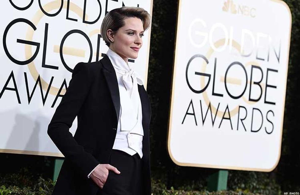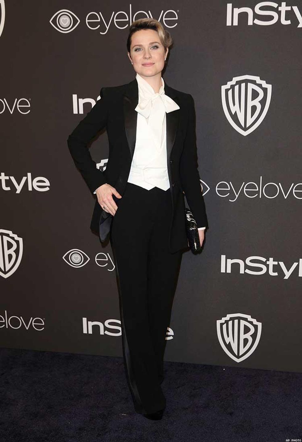 Westworld star Evan Rachel Wood certainly represented queer women in a big way at the Golden Globes on Sunday. Evan, who is bisexual, was nominated for her role as Dolores, a lifelike cyborg, in HBO’s dystopian thriller. She lost to Claire Foy of The Crown, but she’s always a winner to us. And she certainly won with her custom-designed suit that she told E’s Ryan Seacrest was intended as an homage to Marlene Dietrich, Victor/Victoria, and David Bowie. But more than that, she expressed that she wore a suit to encourage girls to be who they are. Evan explained that she’d been to the Globes six times (nominated three) and had previously worn only dresses. She made a deliberate choice to wear a suit this time. "I want every girl to know she can wear a suit," Evan told E. "I'm not trying to protest dresses, but I want young girls and women to know that they aren't a requirement. Just be yourself because your worth is more than that."