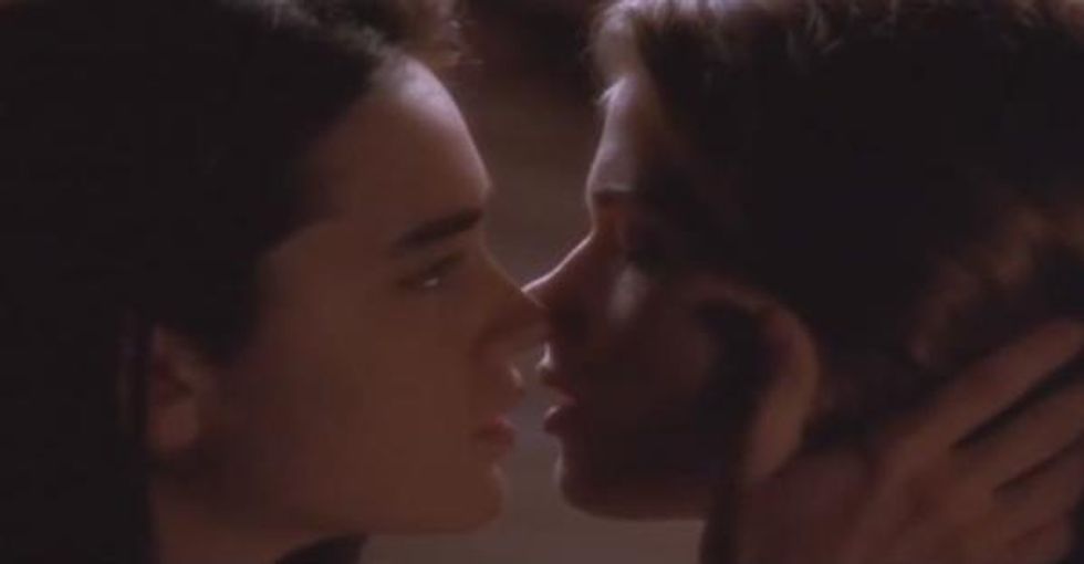 This intense drama unflinchingly explores race, rape, responsibility and sexuality in a way that was damn near unheard of when the film hit theaters in 1995. And while the film included easily despicable characters like a white supremacist and a rapist, it was the girl-on-girl kiss that often evoked the most visceral reaction inside the theater, according to a SheWired editor who saw the film in her hometown when it first came out. After being brutally raped by a guy she was dating, Kristen (Kristy Swanson) confides in her lesbian friend Taryn (a young and totally stunning Jennifer Connelly) that she feels safe when they're together, and like Taryn really understands her. It's clear in the scene below that what Taryn understands is the mutual attraction between the two teenagers, despite Kristen's boyfriend — who for all intents and purposes is out of sight, out of mind in the intimate exchange below.