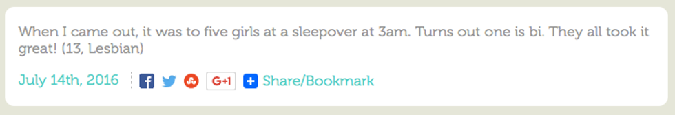 This inclusive site collects coming out stories from submitters and shows that coming out encompasses an entire range of experiences. It's relatable, it's funny, and it'll make you cry. But it’ll also make you feel so much less alone. If your queer circle is small, sometimes it just feels so good to read about experiences like yours and hear voices that remind you of a younger, or maybe help you imagine a future, version of yourself.