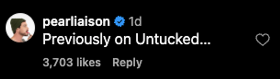 BenDeLaCreme deadpanned, “But is it fashion?” while Pearl chimed in, “Previously on Untucked.”