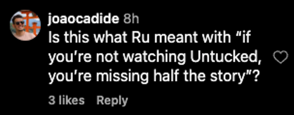 Others joined in on the Untucked joke, asking if this is what RuPaul meant when she said we were only seeing half the story if we didn’t watch.