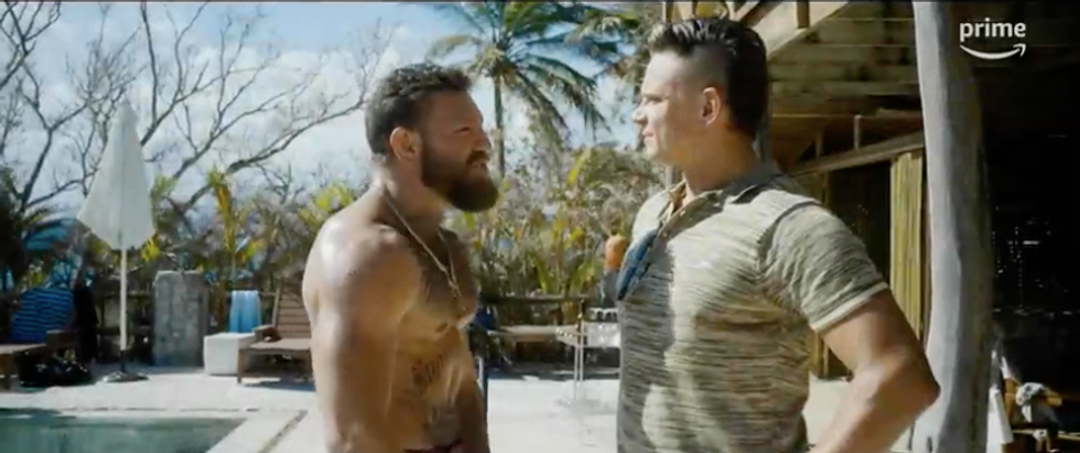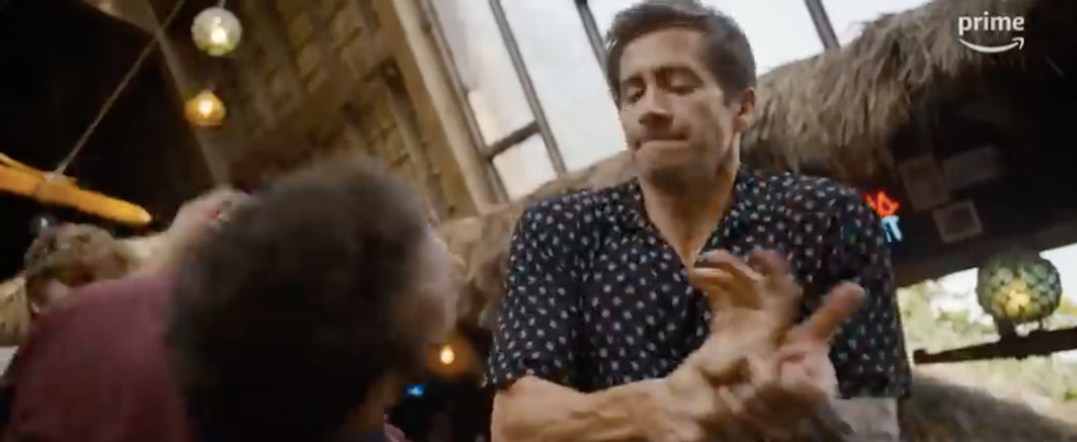 This time around, Brokeback Mountain's Jake Gyllenhaal is starring as ex-UFC fighter Elwood Dalton, who starts working as a bouncer in a bar in the Florida Keys "only to discover that this paradise is not all it seems," the official synopsis reads. The action-packed trailer features boat chases, an epic explosion, Dalton getting into a nasty fight with iconic UFC fighter Connor McGregor making his feature film debut, and one-liners that will keep you giggling.