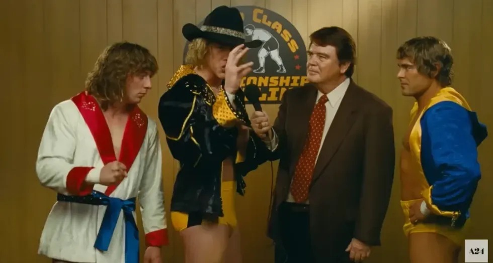 The Iron Claw stars Zac Efron and Jeremy Allen White—who both clearly spent a lot of time in the gym to prep for their roles—as two members of a famous wrestling family. White stars as Kerry Von Erich and Efron as his brother Kevin Von Erich, or the "Golden Warrior," both members of the real-life Von Erich wrestling dynasty.