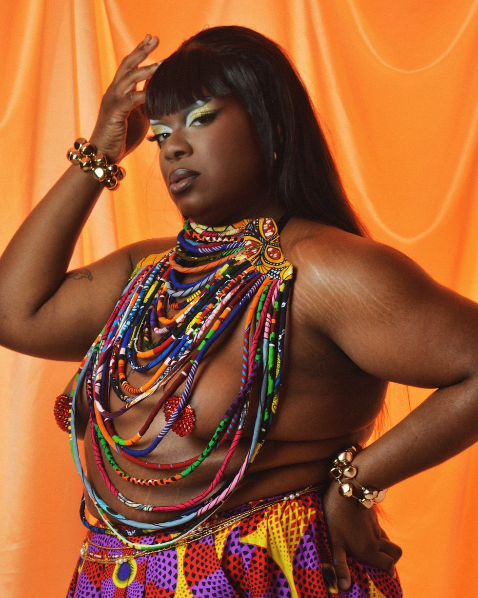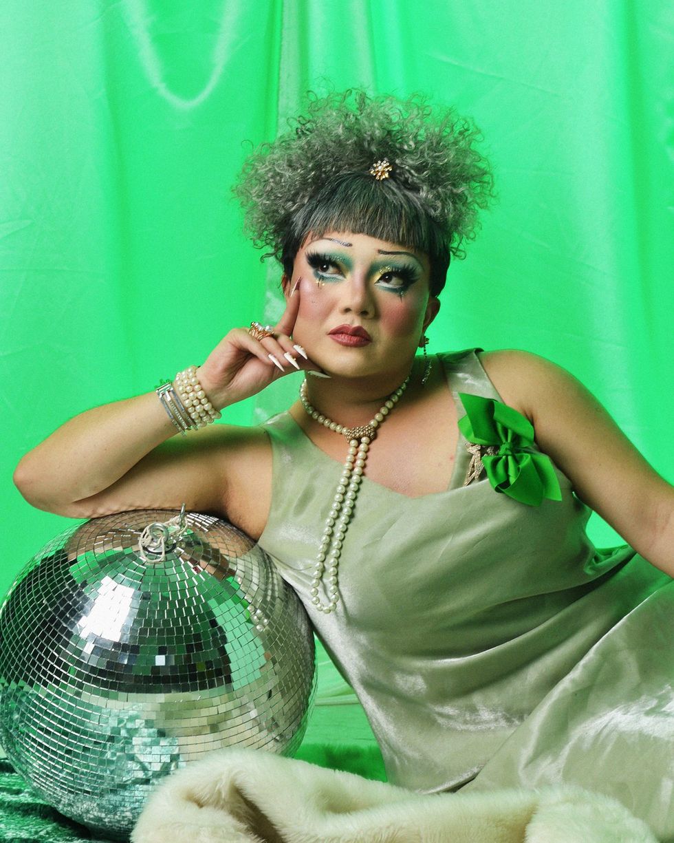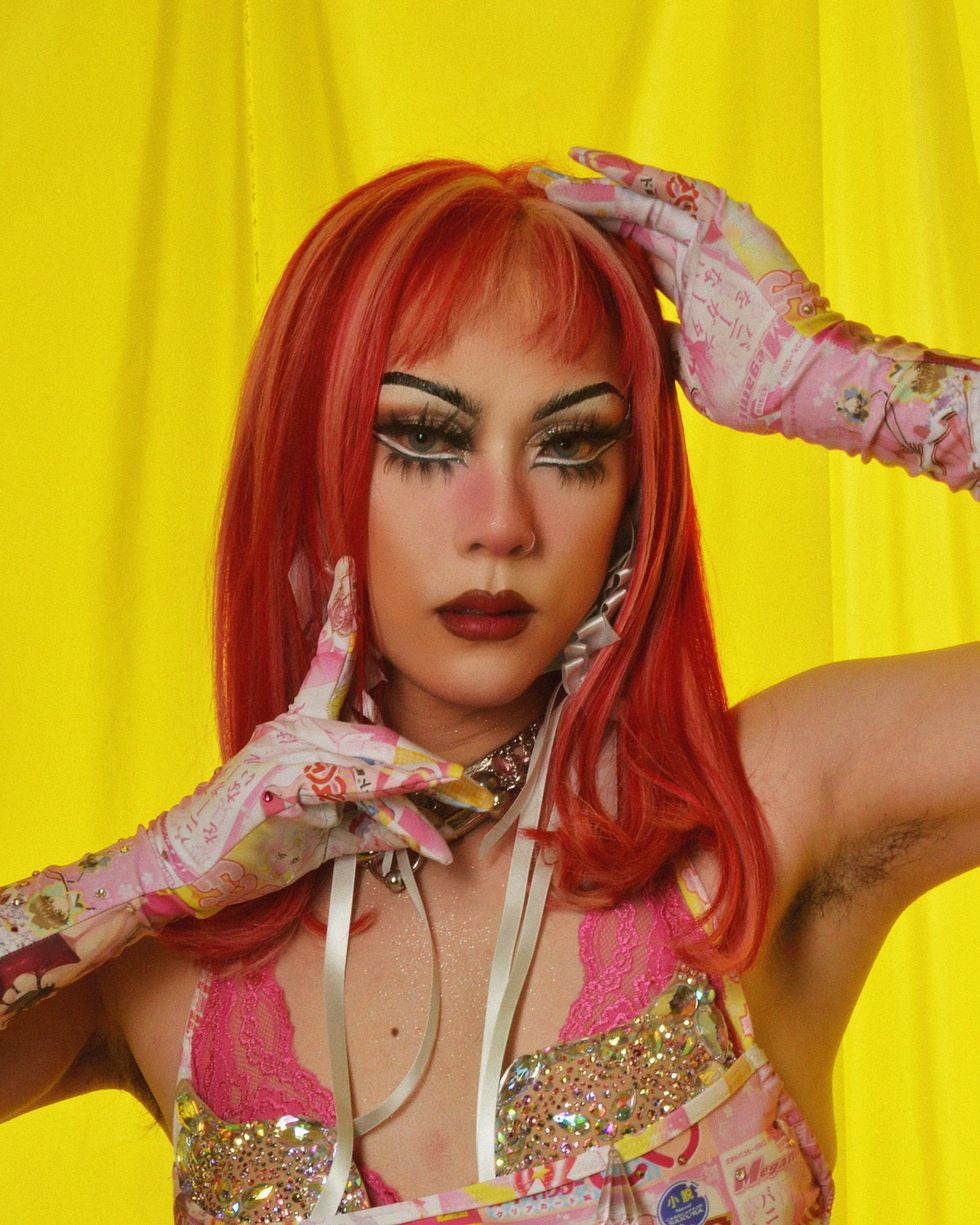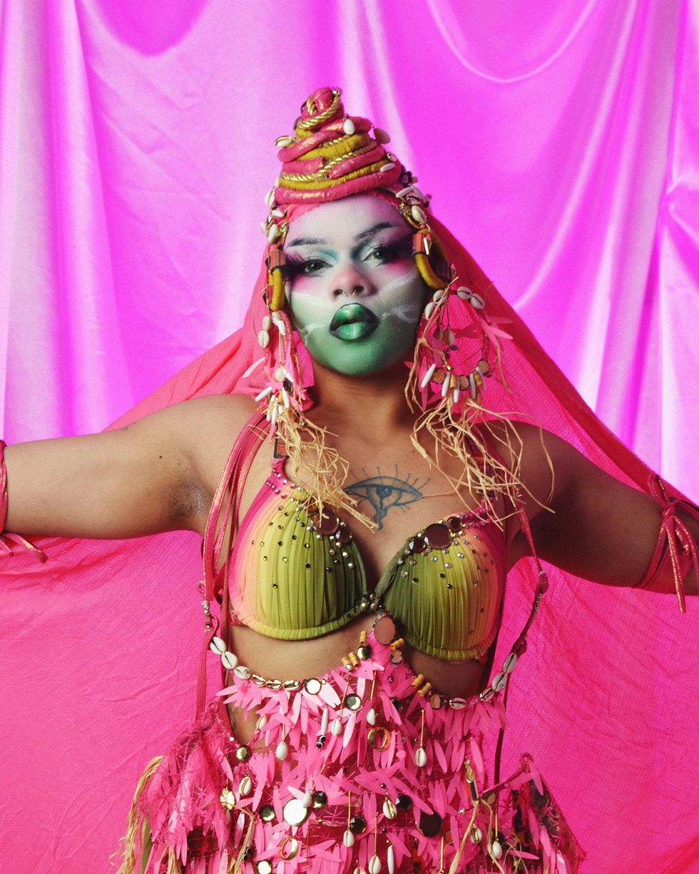 For Xana, drag is a medium for healing the person underneath it all. Growing up in a culture where "gender roles are completely imposed on you," Xana explains how their mother would force them to wear enormous hair bows, attend church, and speak in a feminine manner. Xana says their drag allows them to reevaluate the gendered roles they were forced into: "I realized I can wear these bows, and I can still dress in a more masculine way, and I can do these things from my culture on my terms."Emi Grate