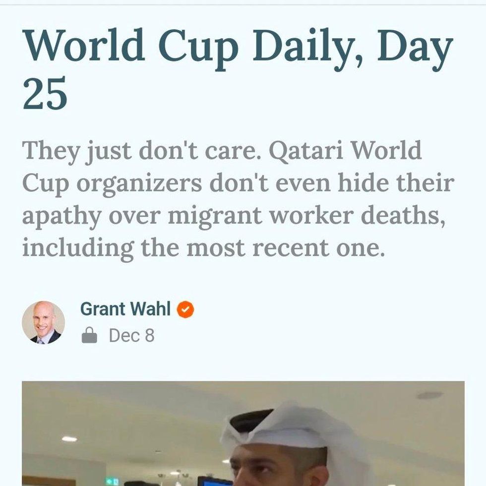 World Cup Daily, Day 25They just don't care. Qatari World Cup organizers don't even hide their apathy over migrant worker deaths, including the most recent one.