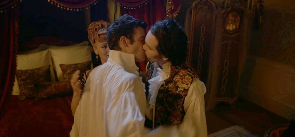 At long last Queen Charlotte: A Bridgerton Story gave us what we've been craving since the very first bosom heaved on this franchise, an actual gay sex scene (yes, yes there was kinda that other one, but you know what we mean)! Brimsley and Reynolds may be talking about the King and Queen but all we care about in this moment is the love in the servant's quarters!