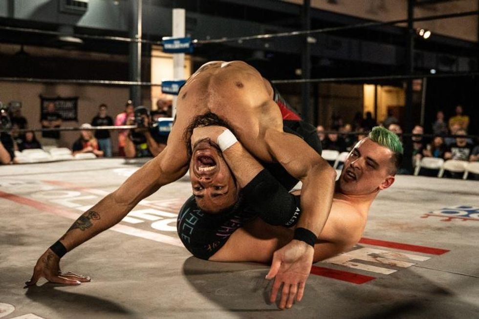 Sponsored by Pabst Blue Ribbon beer, the event was a series of shows featuring LGBTQIA+ performers and allies – and oh-so-much wrestling. Photographer Nick Karp snapped some stunning images of a few of the most outrageous moments between Effy's facedown with Pimpinella Escarlata, the faceoff between Keira Murray and Billy Dixon, a smackdown between Jai Vidal and Carlos Roma, and so much more.