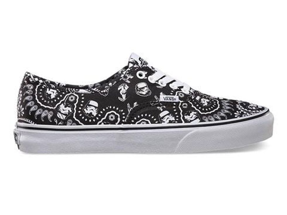 Get your inner skateboard nerd ready to ollie because these shoes are anything but goofy (on your) foot! Vans premiered their Star Wars Collection and I've stopped more than once at store windows when I've noticed these puppies without knowing what I was looking at, but still being drawn by the force. That's because Vans has combined Star Wars iconolatry with hip patterns that make for a super interesting combination. For some reason, I think it completely works. My favorite is the Star Wars Authentic shoe because I am leaning towards loving all things bandana patterned lately: