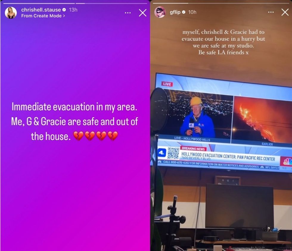 Chrishell Stause and her spouse G Flip were forced to evacuate their home in the Hollywood Hills. Each posted to their Instagram stories sharing that they and their dog Gracie were safe.