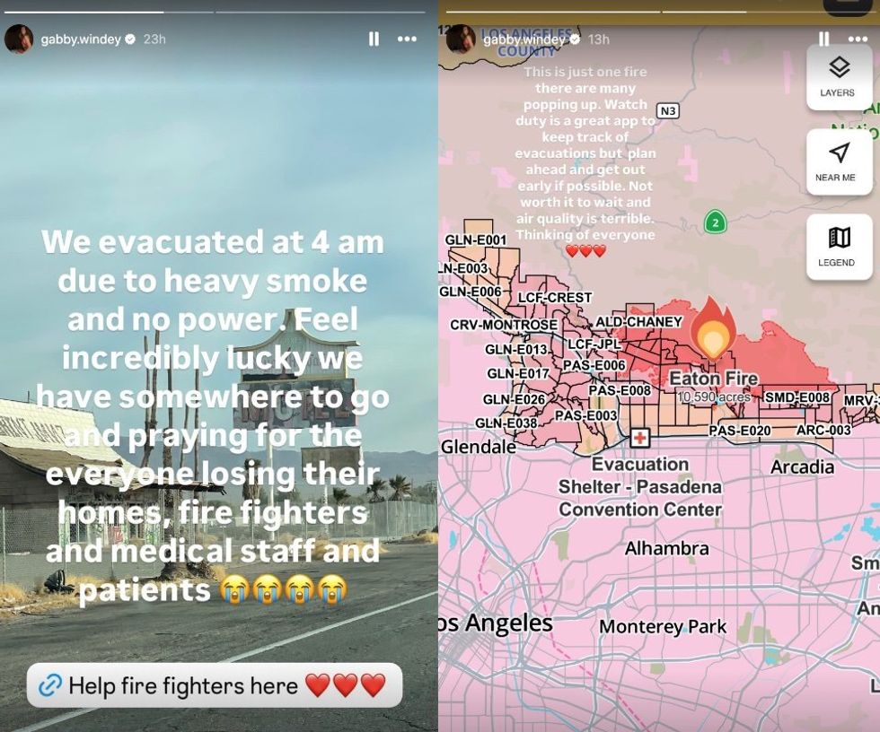 Later on Instagram, she shared that she had evacuated safely to a hotel.
