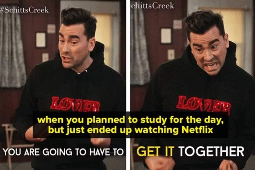 This is the GIF you use when you're really frustrated! This comes from one of the show's funniest moments, when Moira and David are unsuccessfully trying to make enchiladas.