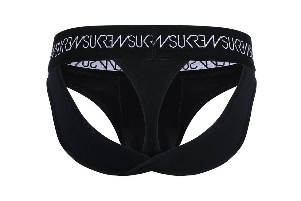So here’s the rundown, this monochromatic, black-and-white collection features three designs: Classic Brief, Jockstrap, and Thong.