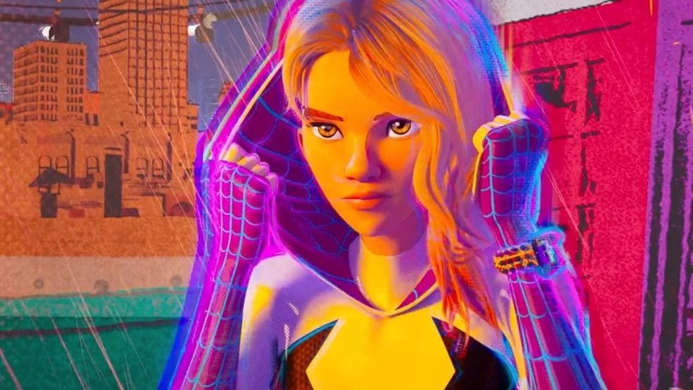 Sharp-eyed fans analyzing every frame noticed a piece of decor in the background of one frame. When Gwen (Hailee Steinfeld) looks at a picture of her and Miles, there’s a sign on the bedroom wall that reads “Protect Trans Kids.”