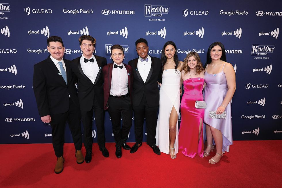 GenderCool Champions (left to right) Sivan, Daniel, Kai, Ashton, Gia, Chazzie, and Hayden at the 2022 GLAAD Media Awards.