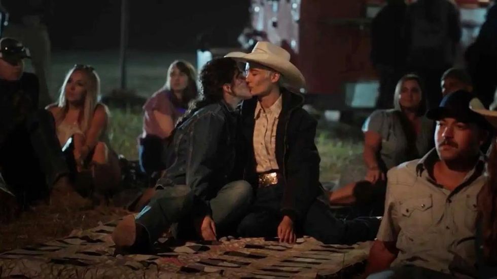 Jezebel perfectly set up the scene. "The Dutton family (and its ranch hands) all take a trip to the fair in town to blow off a little steam. John Dutton (Kevin Costner) has become governor this season, which seems like an important job, but he’s mostly avoided doing anything related to said job and thus is free to join this fun trip to the fair. When his love interest, played by Piper Perabo, tells him that he shouldn’t kiss her in public because of the optics, John says, 'My press advisor’s behind me, making out.' Boom! Cut to new cast member Clara (Lilli Kay) giving us full inverse Brokeback Mountain realness under the stars with a cowboy hat-clad lady whose cheekbones could cut glass."