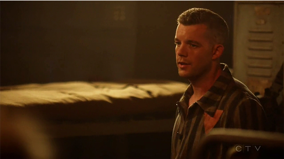 Russell Tovey made his premiere on last night's episode of The Flash as The Ray. Ray Terrell is an openly gay superhero, and in one scene, he's spotted wearing a concentration camp uniform with a pink triangle.