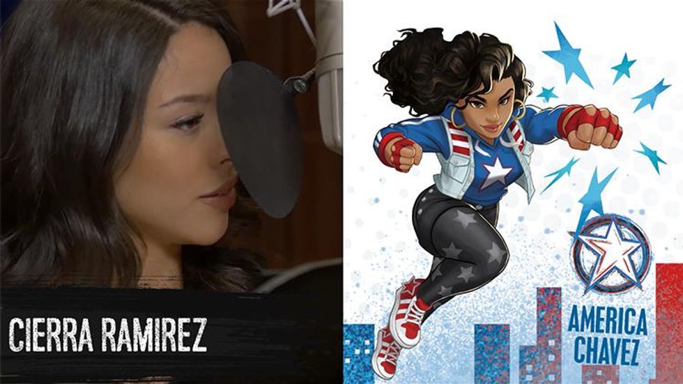 Marvel's launching an animated film franchise with a new, diverse set of superheroes! Marvel Rising: Secret Warriors will feature a wide range of characters, including Kathreen Khavari as Kamala Khan (Ms. Marvel), Dove Cameron as Gwen Stacy (Ghost-Spider), Tyler Posey as Dante Pertuz (Inferno), Kamil McFadden as Rayshaun Lucas (Patriot), and Cierra Ramirez as America Chávez, Marvel’s first Latino LGBT character!