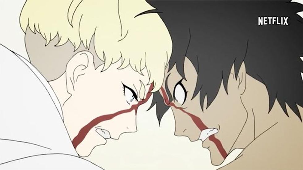 Akira and Ryo are tied together, a bond that just becomes more complicated as the show moves forward. The subtext between them is far from the only queer content in the show that embraces (and in its gory way, destroys) all forms of sexuality.
