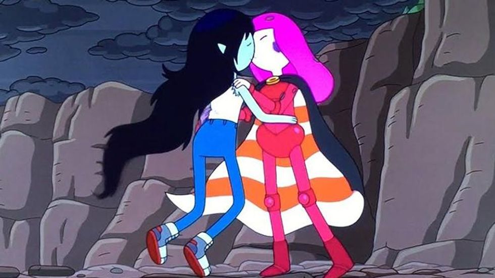 Although many are sad to see Cartoon Network's popular Adventure Time series (the show where Steven Universe creator Rebecca Sugar first showed off her creative powers) come to an end after eight years on air, queer fans of the series got the confirmation they've been waiting for for so long: Princess Bubblegum and Marceline the Vampire finally kissed each other!
