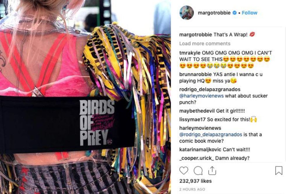 Oscar-nominated actress Margot Robbie took to Instagram earlier today to share the news that Birds of Prey (and the Fantabulous Emancipation of One Harley Quinn) has officially wrapped filming, which means were are now one step closer to seeing her make her trimuphant box-office return as the iconic bisexual antihero Harley Quinn.