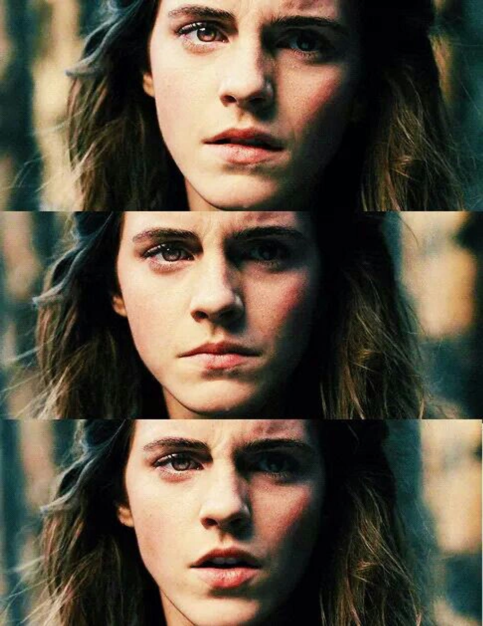 Hermione Granger, played by the enchanting Emma Watson, is the best character in all of Harry Potter. Yeah, we said it! She's got steadfast morals, intellect that never fails and the girl has some spot-on expressions. I mean, come on: