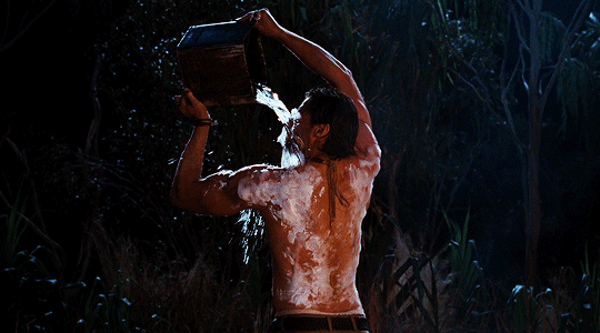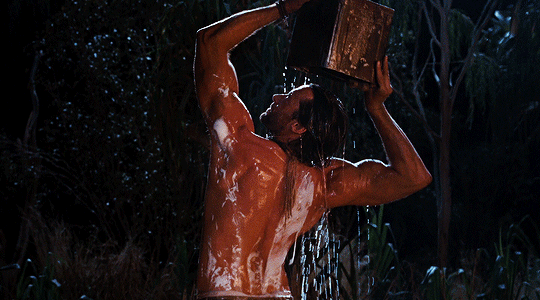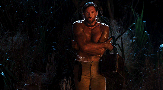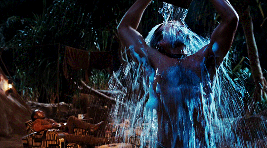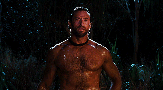 The wildest part about this isn't the animalistic response to Hugh Jackman's happy trail — that's honestly the correct and fully warranted reaction. No, it's that this shot isn't even the sluttiest one in the scene! This is directly after Jackman douses himself with a bucket of water: you see it from the back, you see it from the front, he does a little shimmy, and then we get the ab shot. For a simple homosexual with a lifelong Hugh Jackman fixation, the full GIF set is borderline maddening to view, which is why it's directly below for you to experience for yourself. Now everybody say, "Thank you, Baz Luhrmann."