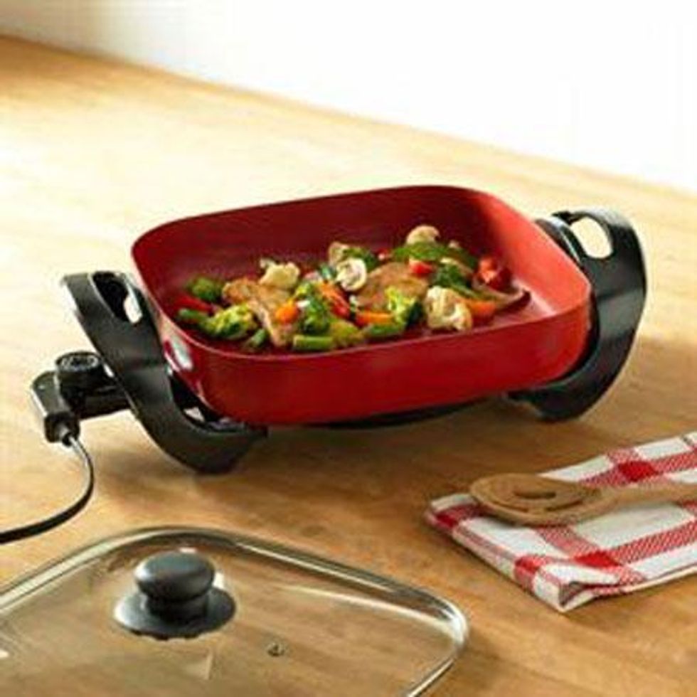 Serve up some meaty tacos or other sizzling delights for your sweetheart in the Deni Non-Stick PFOA-free Electric Skillet. Its deep interior with a 12”x12” non-sticking cooking surface eliminates the need for oil or butter, and when set on warm it can be used for serving. After the cookin’ its easy to hand wash. 1300 watts with a tempered glass lid, and it comes with a temperature probe. What more could a girl ask for? Sale priced $39.99 at www.brylanehome.com.