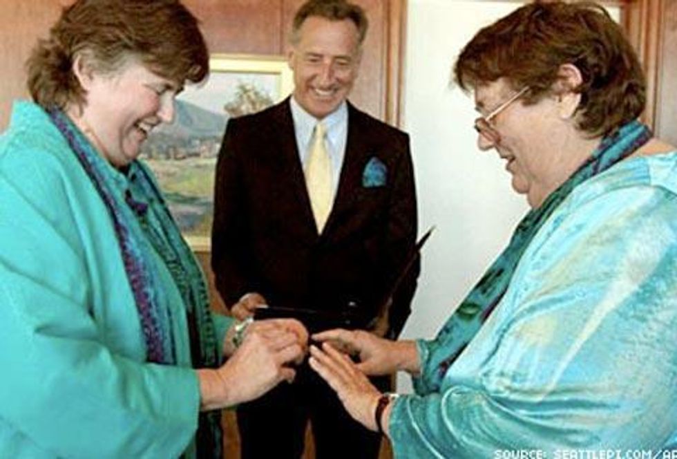 Vermont Gov. Peter Shumlin fulfilled a campaign promise in 2011 when he presided over the wedding of a lesbian couple, marking a first for a sitting U.S. governor. Shumlin, a first-term Democrat, pronounced Ann and Michele "Mitch" Beck married at a ceremony in his own office. Ann and Mitch Beck are retired former administrative assistants at the U.S. Army's Cold Regions Research and Engineering Laboratory in Hanover, N.H. Both had been married before, and met in 2002 through personal ads in a newspaper.