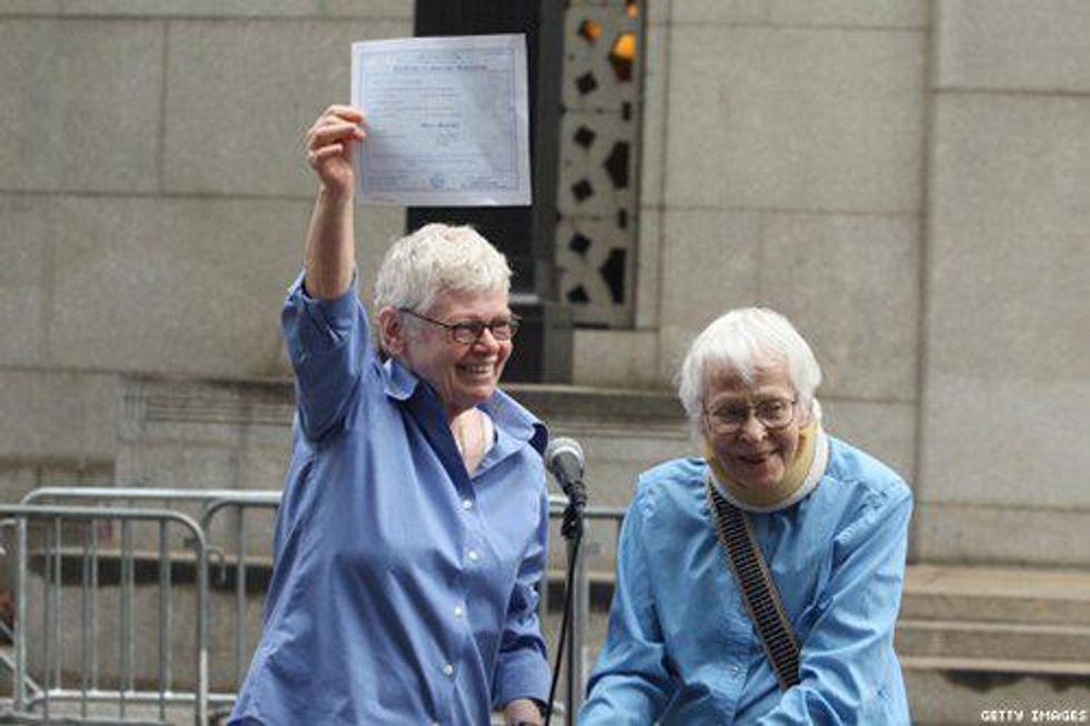 Thea Spyer, left, and her wife Edie Windsor, who was ordered to pay more than $300,000 in property taxes when Syper died — taxes Windsor would not have owed if DOMA didn't prevent the federal government from recognizing her marriage. Spyer and Windsor married in Canada in 2007.