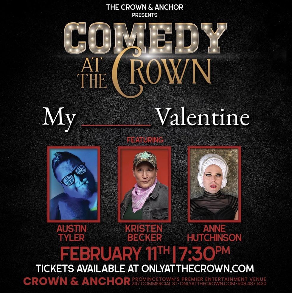 If you find yourself alone Valentine's Weekend or love to laugh with your honey before a night of romance, Crown & Anchor has you covered with roaring talents Anne Hutchinson, Kristen Becker and Austin Tyler! Run don't walk to laugh your heart out February 11th at 730PM.