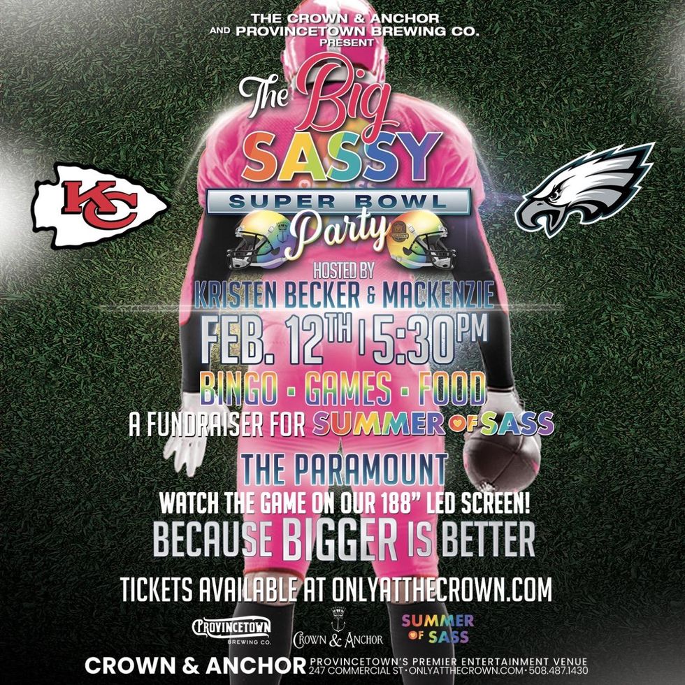 Rounding out the weekend on February 12, 530PM Super Sunday, Crown & Anchor and Provincetown Brewing Co. are hosting The Big Sassy Super Bowl Party hosted by Kristin Becker and Mackenzie to benefit The Summer of Sass, helping so many! Tickets are only $25 and even if you don't like football, there will be plenty of off-screen fun!
