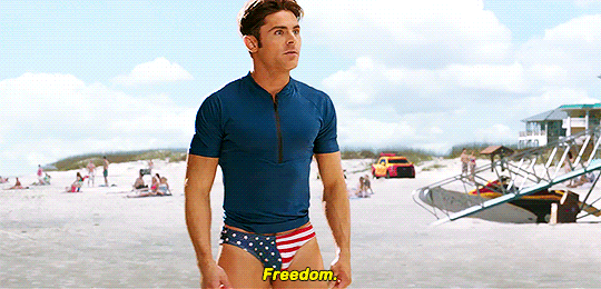 During yesterday's Super Bowl game (aka one of America's quintessentially most watched sporting events) a new trailer for the modern-day reboot of the hit TV show Baywatch ran, and while we were already expecting some typical shirtlessness from stars Dwayne "The Rock" Johnson and Zac Efron, we definitely weren't expecting the latter to rip off his pants and show the world his American flag-themed Speedos.