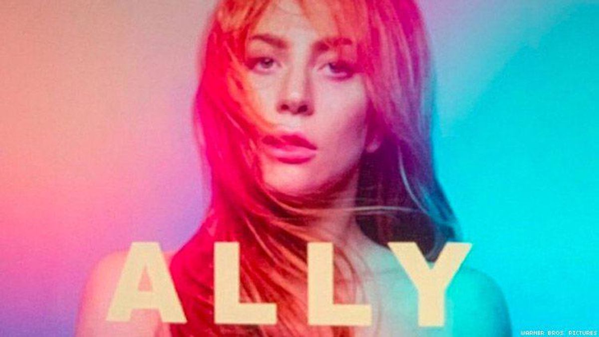 The enormous poster features the fictional, budding pop star Ally in blue and pink lighting overlooking Los Angeles's Sunset Boulevard. The color scheme closely resembles a bisexual Pride flag, and LGBTQ people who refuse to erase Lady Gaga's bisexual identity have taken note.