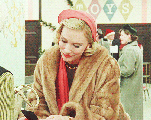 Directed by openly gay filmmaker Todd Haynes, one of the critically-acclaimed 2015 movie's most iconic scenes is when Carol (played by Oscar winner Cate Blanchett) and Therese (Rooney Mara) meet for the first time in a Manhattan department store while the former is shopping for a Christmas present for her daughter.
