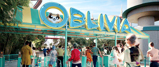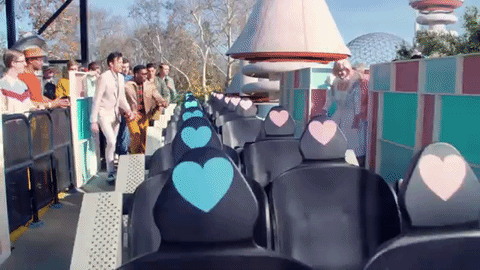 0:48 — Roller coaster separated by gender, enforcing a heteronormative lifestyle