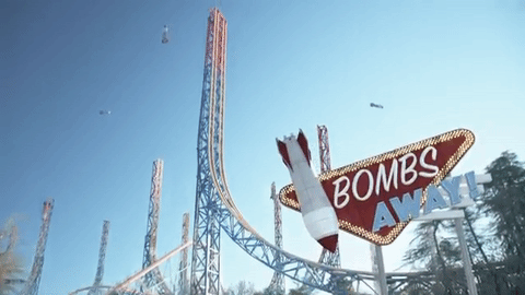 1:50 — The ‘Bombs Away’ ride shows a flurry of falling bombs