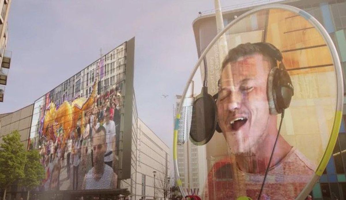 Festivities were canceled amid ongoing social distancing measures, but the virtual performance takes the viewer to beautiful spots in Wales (Cymru is the Welsh name for the nation) as Evans, the opera singers, and musicians are projected onto buildings and stadiums, often with lighting in the colors of the Pride flag.