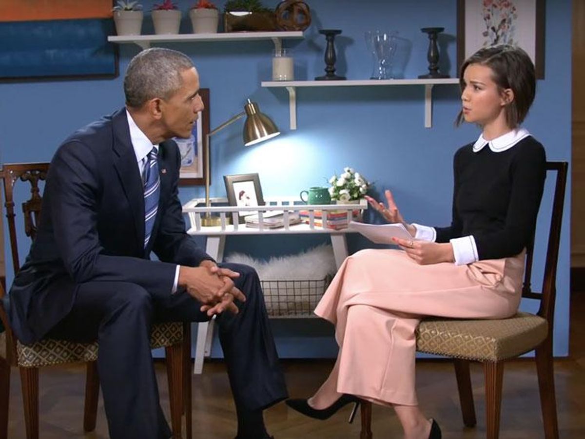 YouTube star Ingrid Nilsen, who came out online last summer, had the rare opportunity for a 16-minute sit-down interview with President Obama. Ingrid asked the President incredibly thoughtful questions ranging from terrorism to women’s healthcare issues (specifically the tampon tax) to whether or not same-sex marriage rights could be rolled back. Referring to Alabama Chief Justice Roy Moore’s attempt earlier this month to halt same-sex marriage in that state, Ingrid asked the President if marriage rights are in danger.