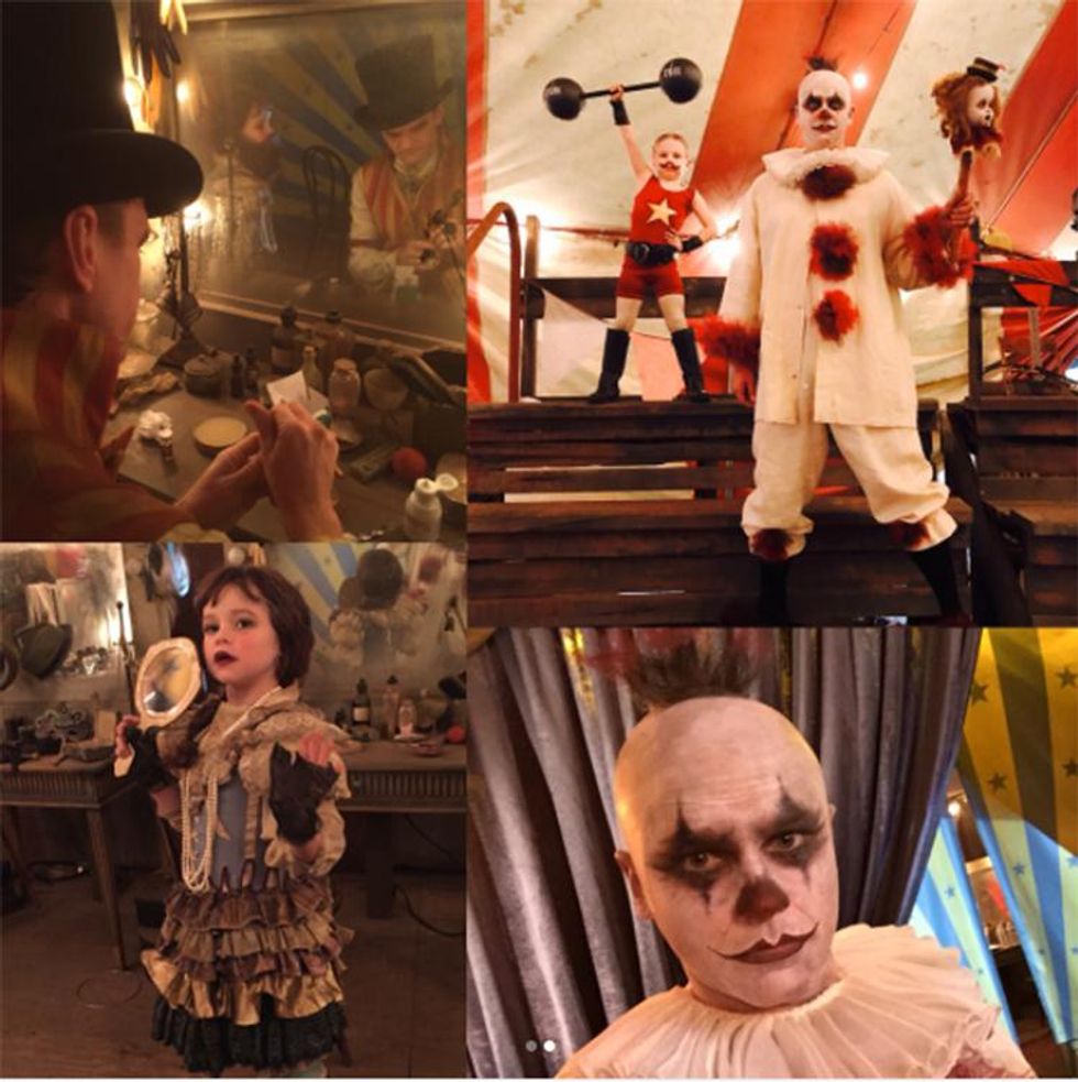 The family went with a carnival theme this year: Harris as the ringmaster, Burtka as a terrifying clown/puppeteer(?), and their 7-year-old twins Gideon Scott and Harper Grace as the 'World's Strongest Man' and a bearded woman, respectively.