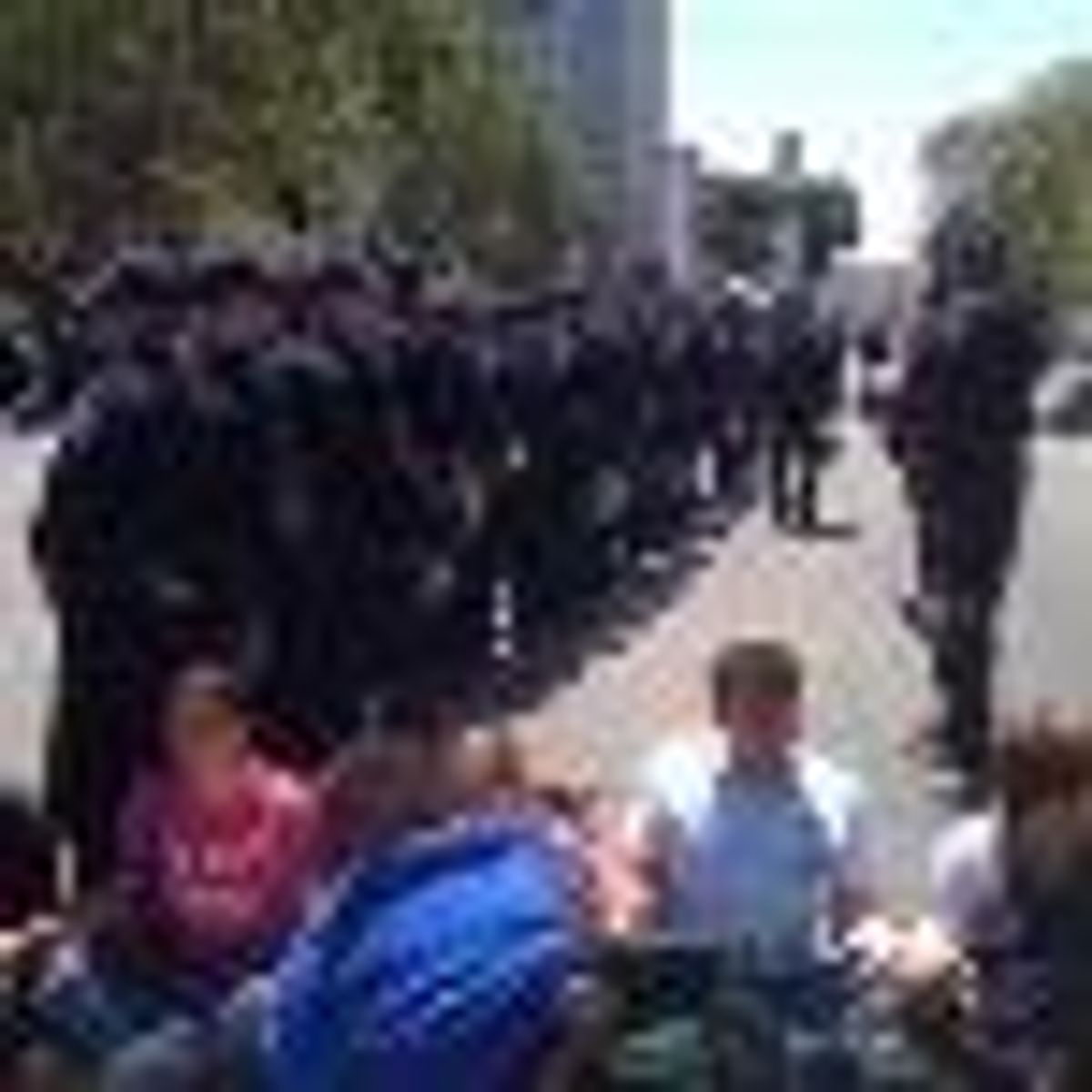 Officers were seen placing plastic handcuffs on protesters and leading them to police vans waiting nearby while with each new arrest, the crowd cheered.