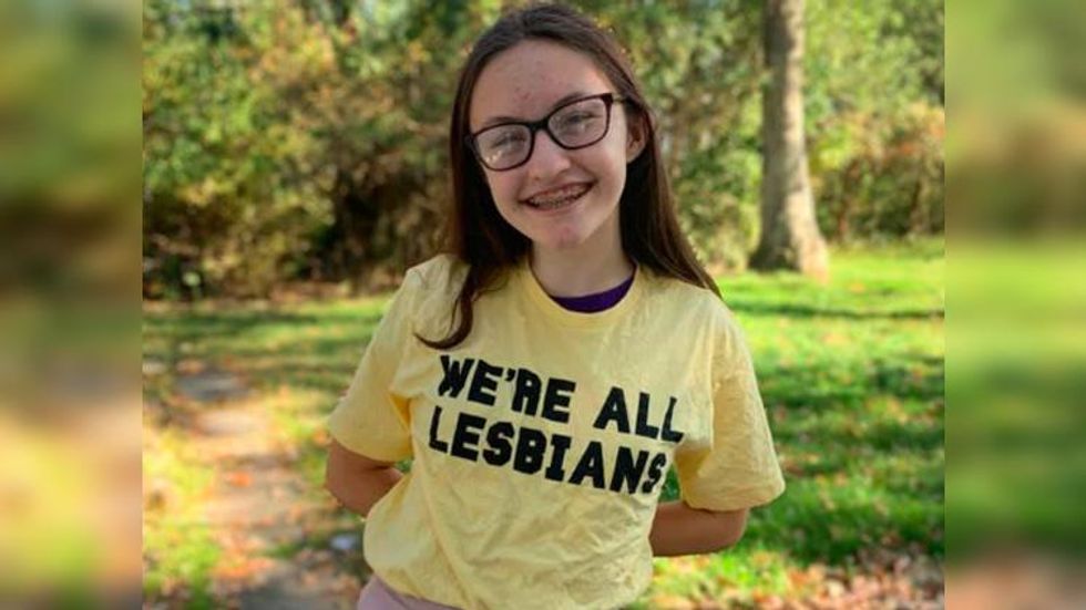 A middle schooler who was reprimanded for wearing a “We’re All Lesbians” souvenir shirt from the Broadway musical The Prom has turned her negative school experience into a positive one for the whole community.