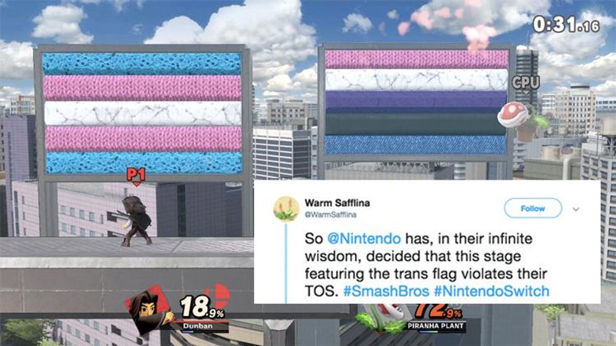She said that one Nintendo supervisor suggested she leave messages on the Smash support forum letting people know what happened, and letting Nintendo know that a trans flag isn’t something that should trigger a ban.