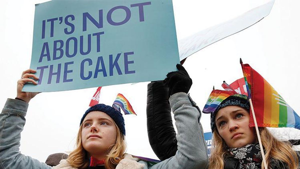 \u201cBusinesses can determine what they sell, but not who they serve. If you sell wedding cakes, you have to sell wedding cakes to everyone. You can't put up a sign that says, "we don't serve your kind here.\u201d #OpenToAll #MasterpieceCakeshop\u201d— ACLU (@ACLU) 1512484864