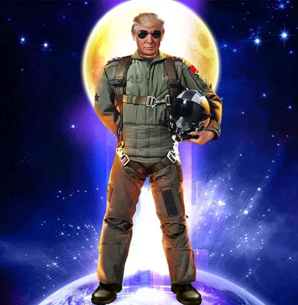 We didn't have this on our bingo cards for 2022. Trump has released digital trading cards of himself imposed on really beautiful young super gay bodies. We have never been so close to his sick head.